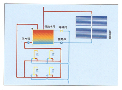 本系統(tǒng)中集熱器集中放置,設(shè)置滿(mǎn)足用戶(hù)需求容量的大型儲(chǔ)熱水箱,控制系統(tǒng)、循環(huán)裝置及其他輔助設(shè)...